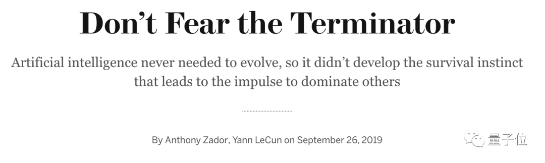 而且这个问题,4年前LeCun已经在《科学美国人》上与冷泉港实验室神经科学家Anthony Zador一起撰文回应过了,标题就叫《不必害怕终结者》