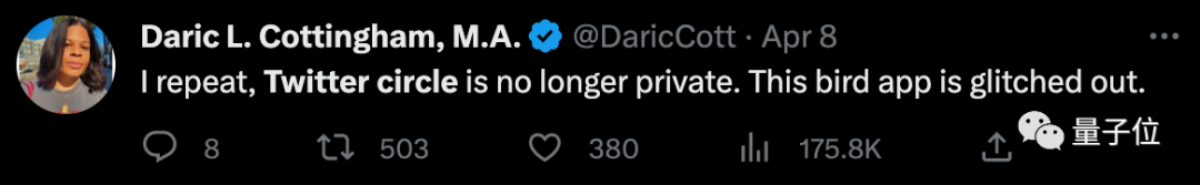 要知道,推特好友圈的功能主打的就是私密性,可以让人发一些只想让好友看到的内容,比如八卦、吐槽甚至私密照啥的……结果现在这个私密性,荡然无存了???