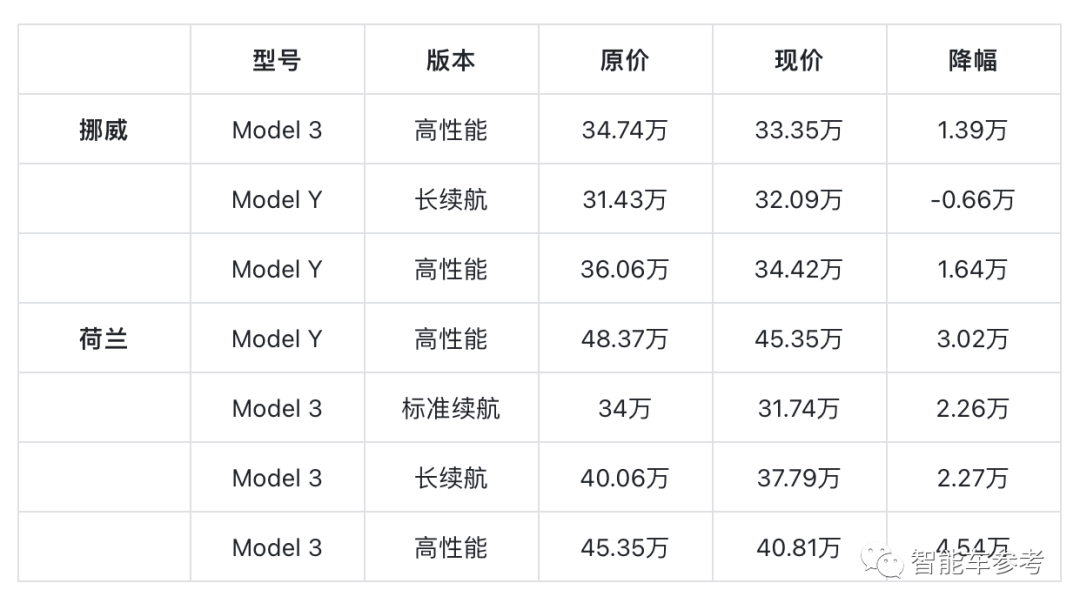 另外,特斯拉也下调了在挪威荷兰的售价。
