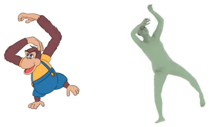 除了草图,像这样的小猴子,四肢严重不按比例生长,Sketch2Pose也可以办到: