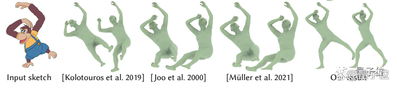 对于猴子“扭曲”的下肢部分,这些方法都出现了理解偏差——Sketch2Pose完胜。