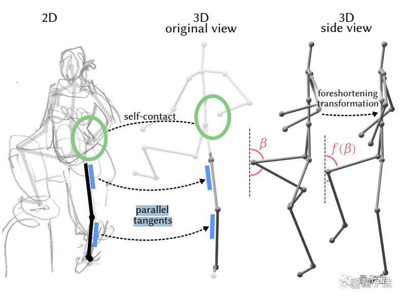 根据这三者预测,再使用最先进的优化框架(optimization framework),并用专门设计的一种新的损失(loss)来平衡姿势自然度,以及与输入草图的相似性,AI就能最终推断出符合画者意向的3D姿势。